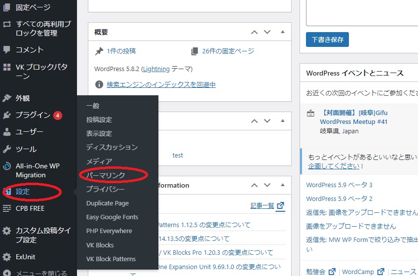 ***パーマリンクの設定を変えた場合、高確率でサイトが動かなくなります。
